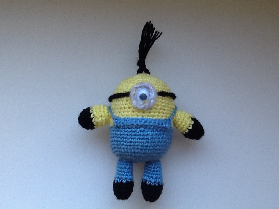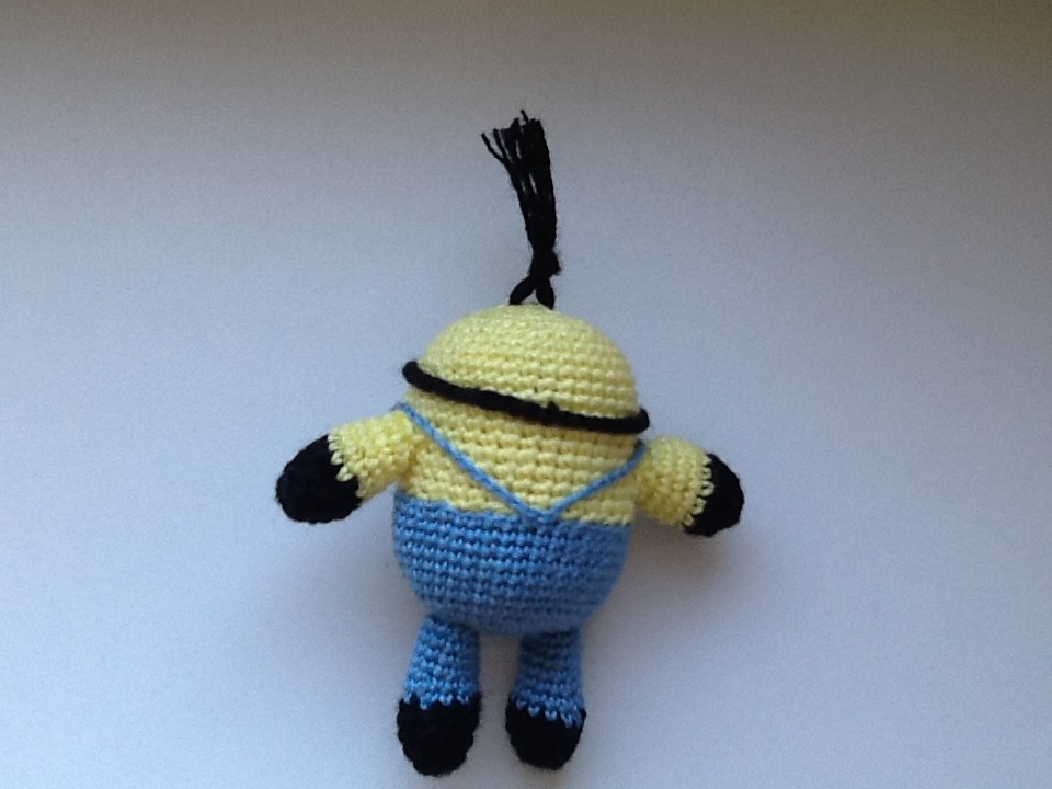 Игрушка миньон амигуруми, внутри яйцо от киндер сюрприза. Высота 8 см.
