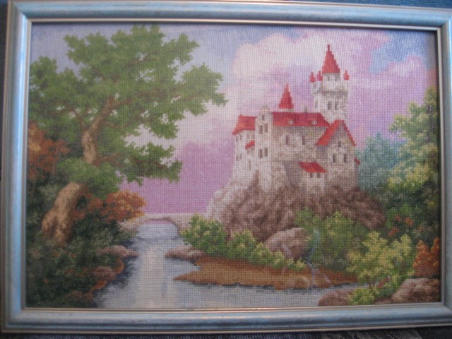 Картина, вышита крестом и полукрестом. Оформление -багет, стекло. Размер картины с учетом рамы 41x31 см.