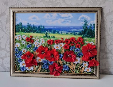 Картина вишита атласними стрічками, бісером і вишивальними нитками на якісному принті. Хто бажає оновити інтер′єр своєї квартири чи подарувати друзям на новосілля, ювілей, будь ласка, ось вам оригінальний подарунок!!!