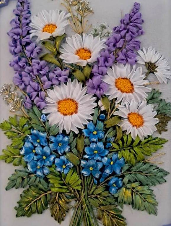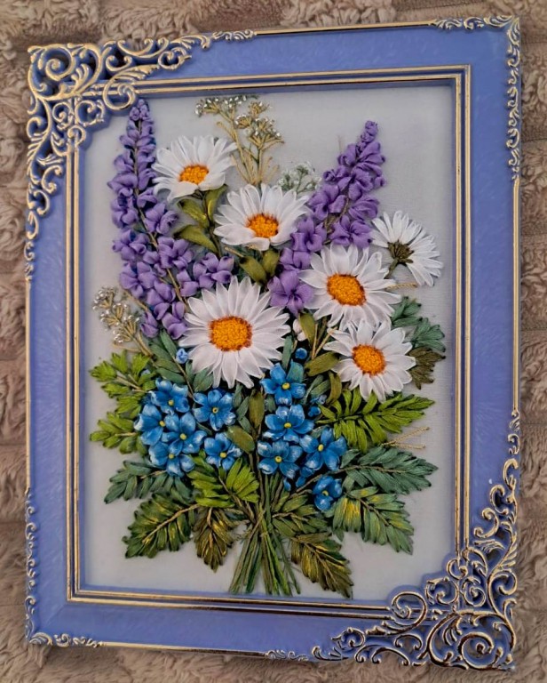Картинка-мініатюрка вишита атласними стрічками, бісером і шовком на якісному принті. Це може бути подарунком для ваших близьких людей або обновкою для вашого інтер′єру..Квіти на картині будуть створювати вам настрій позитиву і гармонії..