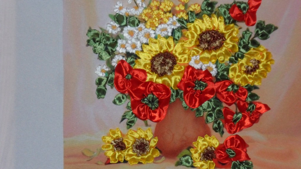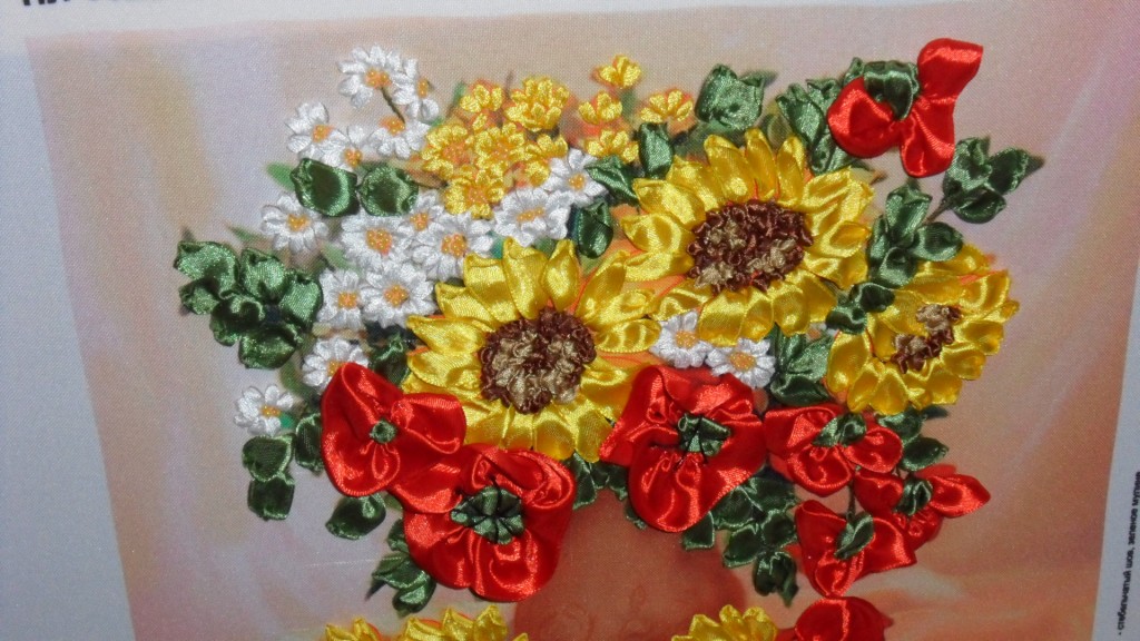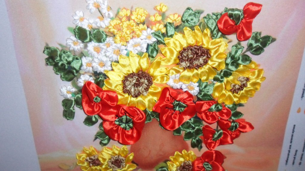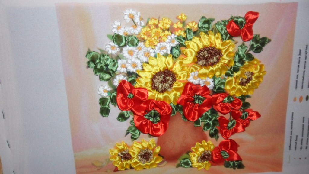 Картина вышита лентами.
