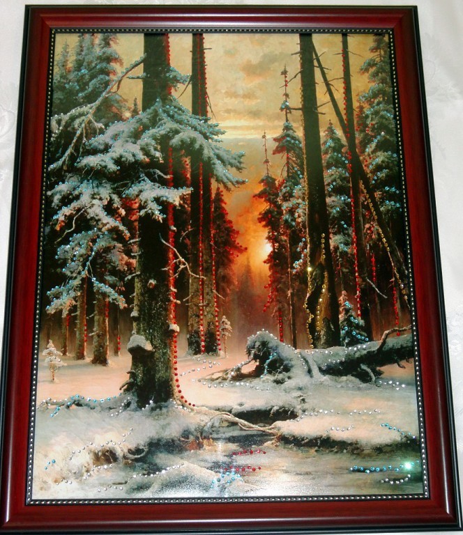 Прекрасное произведение искусства. Репродукция картины Юлия Клевера "Зимний закат в еловом лесу" украшена кристаллами и станет приятным и дорогим подарком любителю искусства. Картина со стразами. Название Зимний закат в еловом лесу, говорит само за себя. Глаз не отвести от такого волшебного полотна. Новогоднее настроение так и веет с этого рисунка со стразами . Уникальный шедевр и самый дорогой подарок любимому человеку. Дорогой не по стоимости, а по значимости. Эта картина станет приятным подарком, как для мужчины, так и для женщины. Картина оформлена в багетную рамку под стекло. Размер 20х30 см.